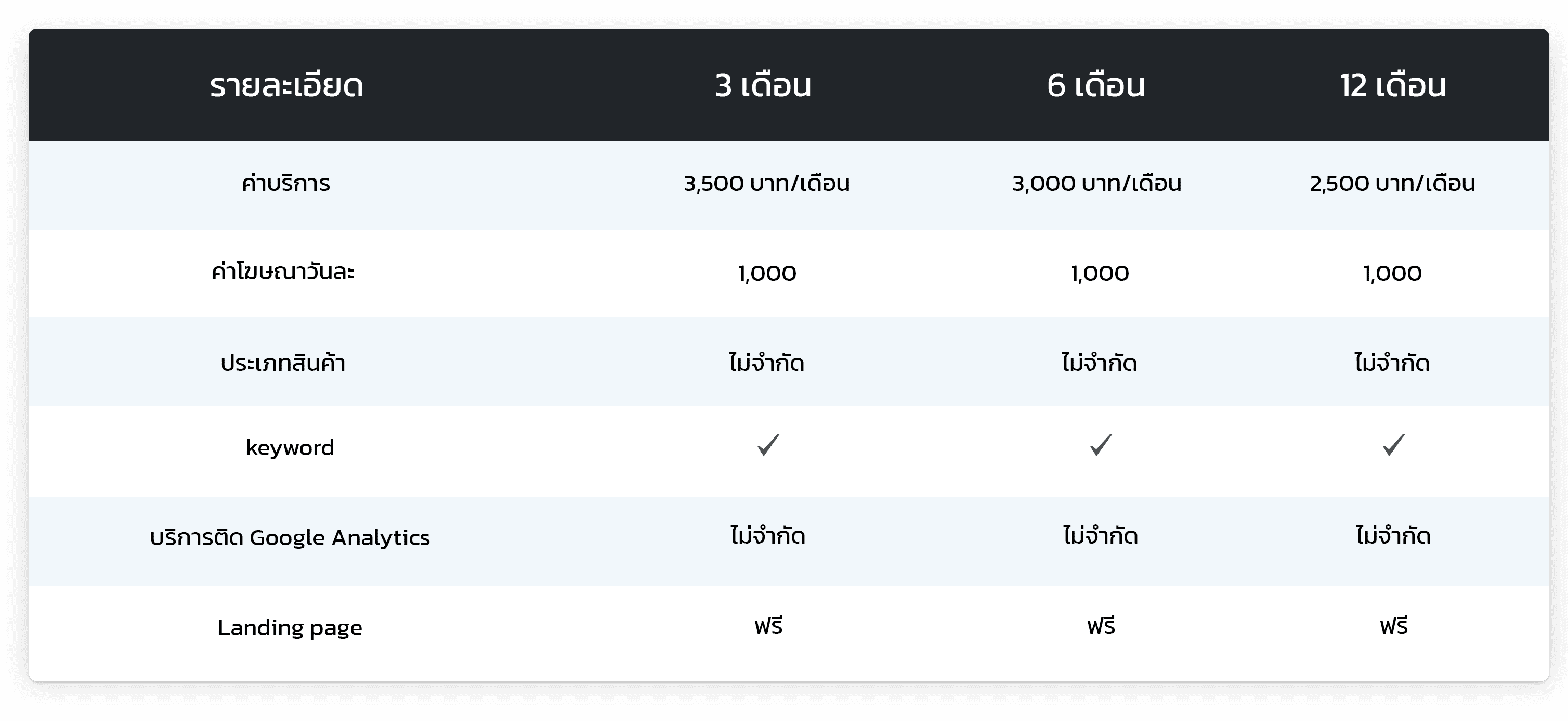 ค่าบริการข้างต้นยังไม่รวมบริการออกแบบ BANNER ADS, INFOGRAPHIC, VIDEO PRODUCTION